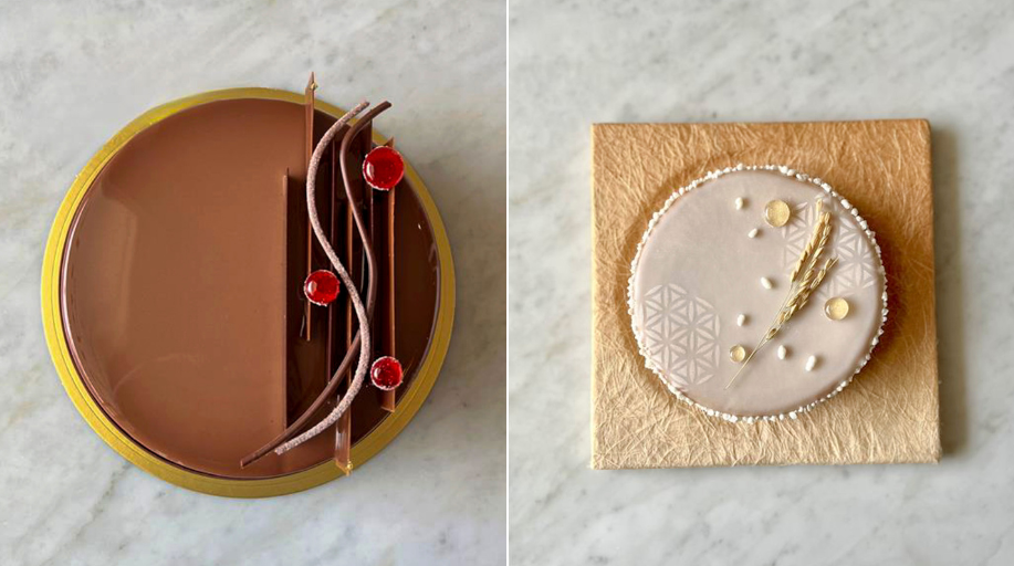 :“我尝试让装饰和外观简洁却不失美观。蛋糕的口味浓郁,融合了巧克力、红茶、覆盆子和玫瑰的芬芳。玫瑰的香味通常比较浓烈,所以我在制作自制果泥时加入了一点玫瑰的香味,最终成就了一款散发着淡淡玫瑰香气的优雅蛋糕。”